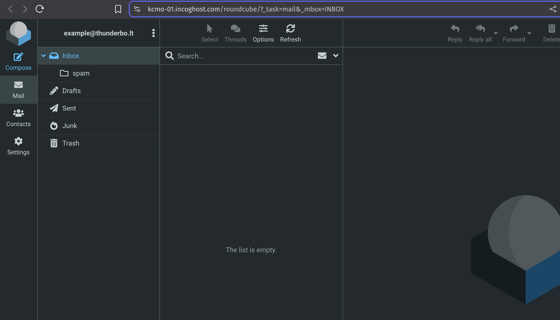 Unlike the premium option, we are not adding or modifying any mail-related DNS records at our domain registar. Instead, any changes you might want to make should be made right here in DirectAdmin, but none of those changes are necessary for this tutorial. I'm just showing you the widget so you can change or modify MX records as needed, if you choose to do so in the future. - Now, go back to E-mail Manager > E-mail Accounts, and log in to your new email account. You'll automatically be redirected to Roundcube webmail.
