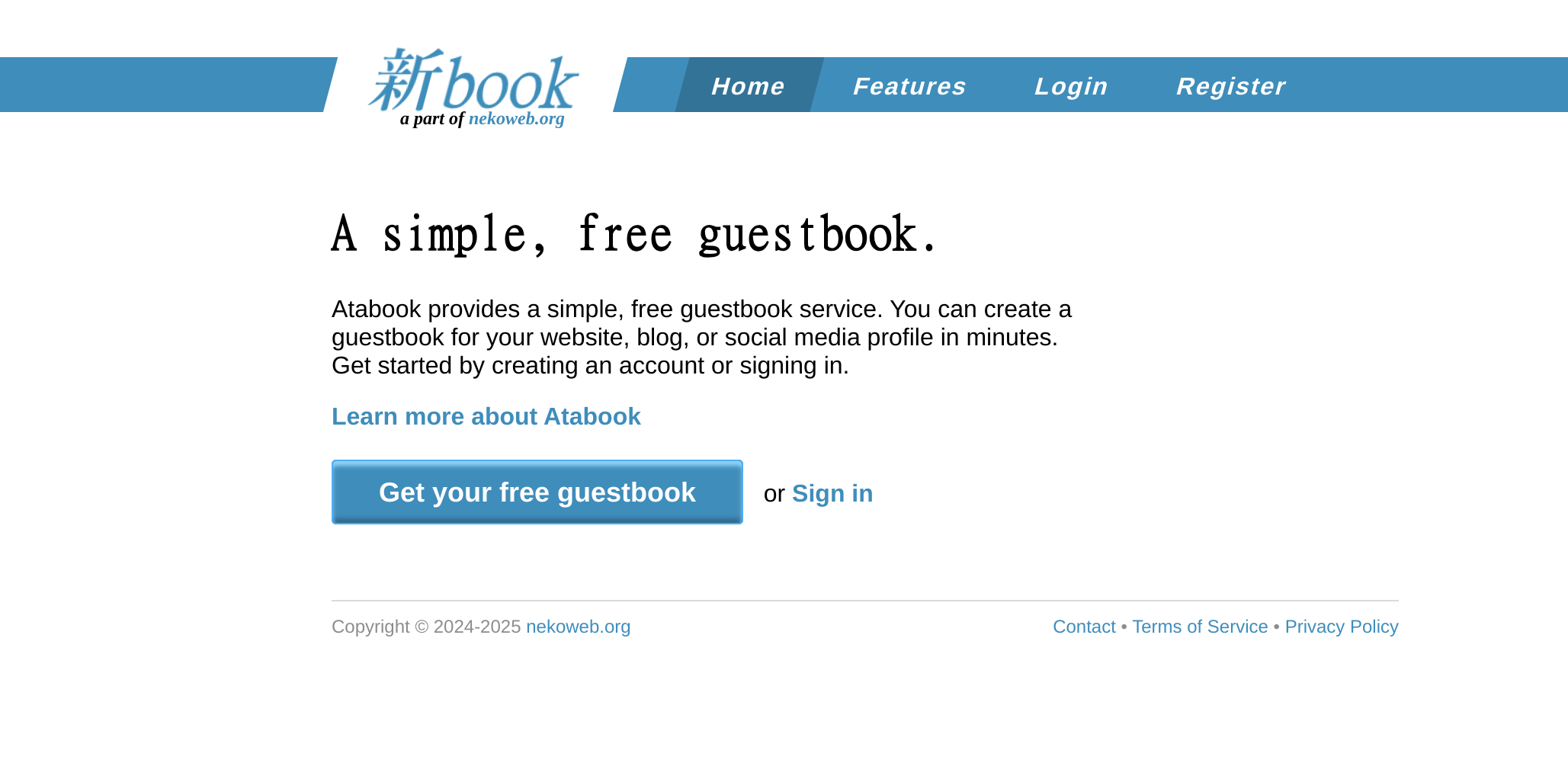 Unlike email on a custom domain, this method of setting up a guestbook is 100% free of charge. We're going to use Atabook.org.