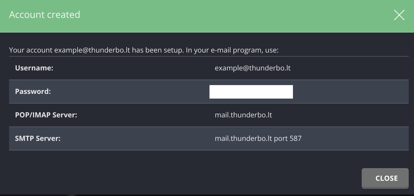 (Note that "example@thunderbo.lt" is not an active nor an existent address). - You're almost done. The last step is to make sure that your email works, and isn't going to go to spam. For that, I use mail-tester.com. Just send an email to the address generated, and then click the button on the website to see how your email address scores.