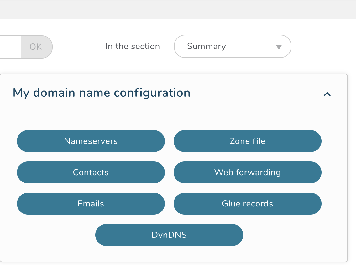 - Click on the menu icon in the upper left screen > Domains > My Domains, and then click on the domain you want to begin managing. Navigate to "My domain name configuration" and click on "Zone file."