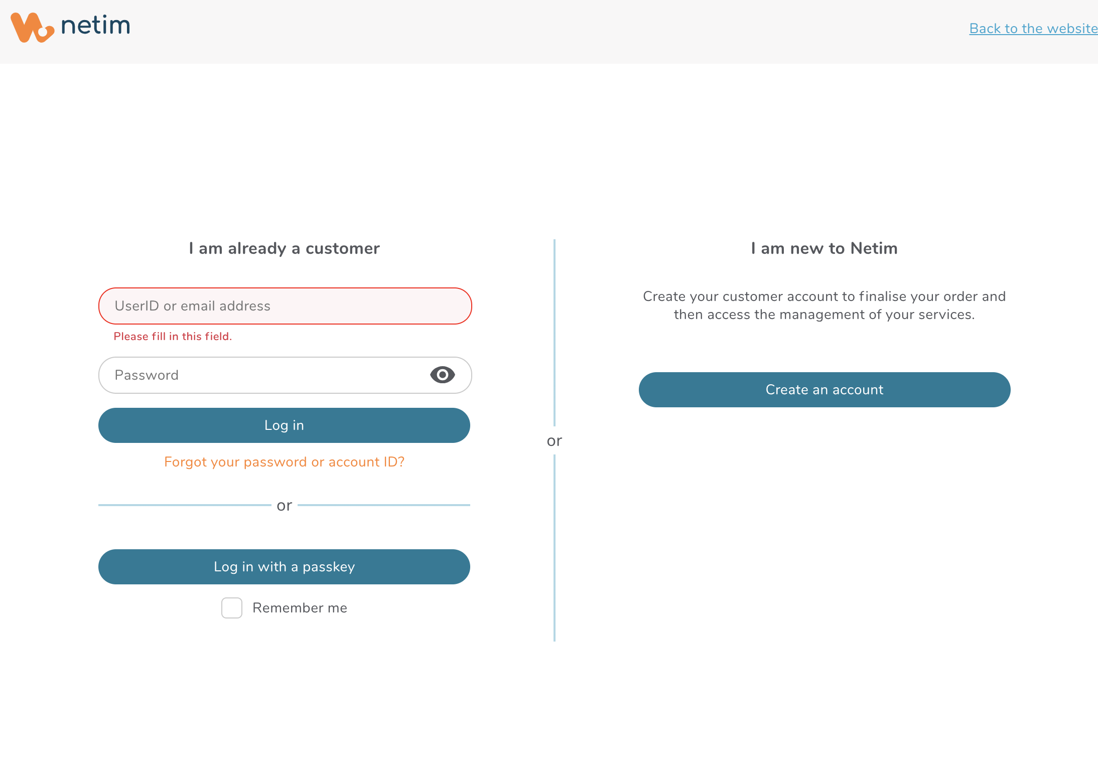 If you're already a Netim customer, log into Netim Direct. If you're new to Netim, create an account and enter the necessary information.