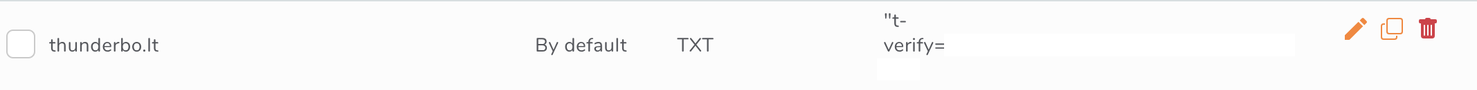 - Tuta will issue an authorization check. This basically means that they have to verify that this domain actually belongs to you. To do so, they're asking you to add a unique text, or TXT record, to your zone file.